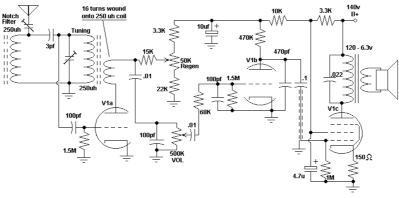 | Schematic of 1-tube radio. |
